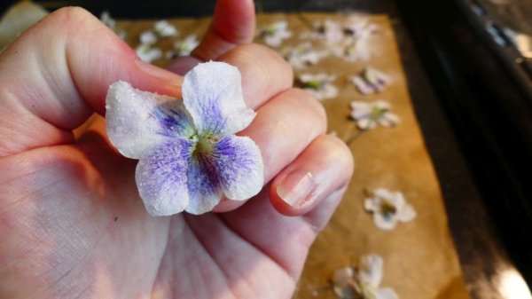 Ha már kellően kiszáradtak, akkor fordítsuk fel őket, és úgy szárítsuk tovább. Másnap légmentesen záródó üvegbe vagy dobozba helyezhetőek. Pár hónapig felhasználhatóak, de időnként szellőztessük meg. Íze nem igazán van, cukros zöld íz, de a látványa annál szebb. Ha illatos ibolyából csináljuk (horror, hiszen fele ekkora virágokat kell kenegetni) és még csak pár hetes a kandírozás akkor enyhe ibolya illatízt érezhetünk a szánkba ami igen érdekes, hogy belülről érezzük az ibolya illatát, nem pedig szagolgatva, de ez az aroma idővel elillan sajnos.