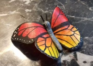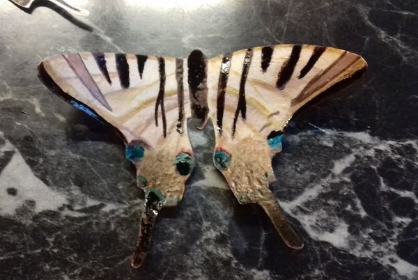 Szárítás, formázás: Ha túl nedves, akkor próbáljuk a kívánt formát tartani ujjainkkal, hogy ne pöndörödjön túl és vagy fújjuk, vagy hajszárítózzuk. Ha nagyon túl nedves, akkor lehet, hogy sajnos kuka lesz. A fekete és fehér fedési színek, minták előtt javasolt száradni hagyni az alapot, mert megfolyhat. A hátlap festése előtt feltétlen szárítsuk meg a fedlapot. Hátlap fedése után már elég nehéz a pillangót fogni, igazgatni. Látjátok a videón, hogy igazgatom, nyomogatom, hajlíthatom, közben folyamatosan fújom, hogy száradjon. A pillangókat sokszor a kezemben szárítom 10 percig, utána rakom csak le, így közbe tudom még formálni. Fontos, hogy a nedves pillangó ragad. Ha bármi papír jellegű felülethez ér, odaragad, és csak roncsolásosan jön fel. A kezünkhöz és fém rácshoz kevésbé ragad, ezért ott szárítom.